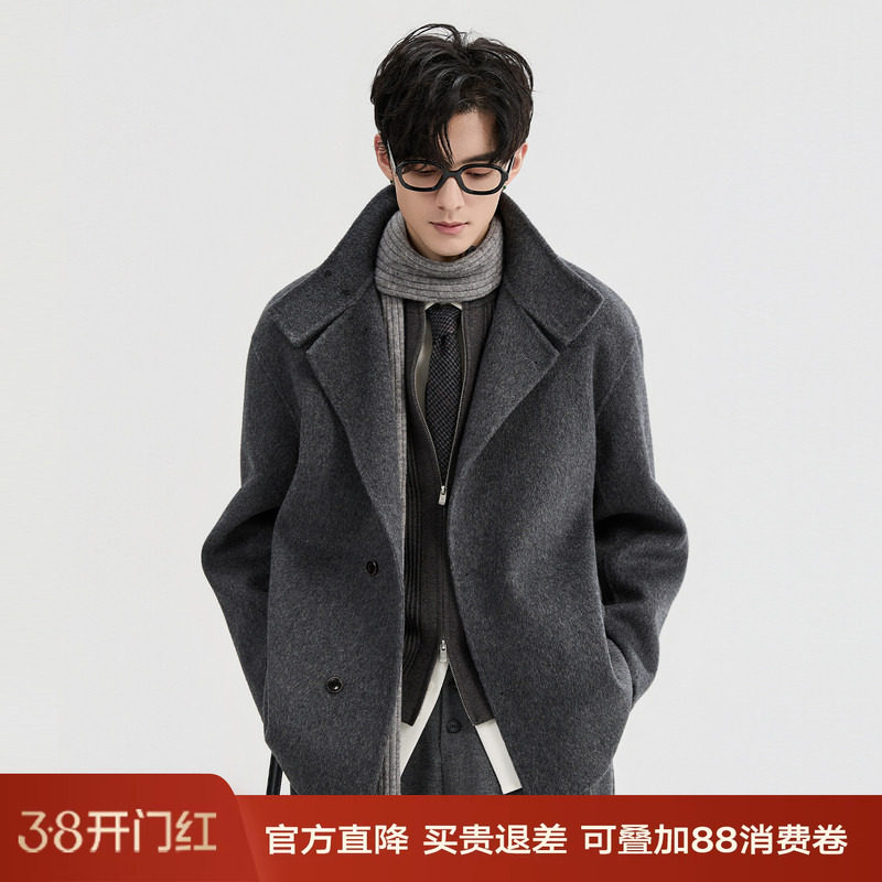 全羊毛可翻立领设计BJZE25冬季一手长双面毛呢大衣男韩式短款外套