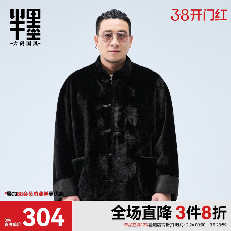 半墨冬季仿皮草大衣男新中式立领唐装麂皮毛一体夹克外套大码男装