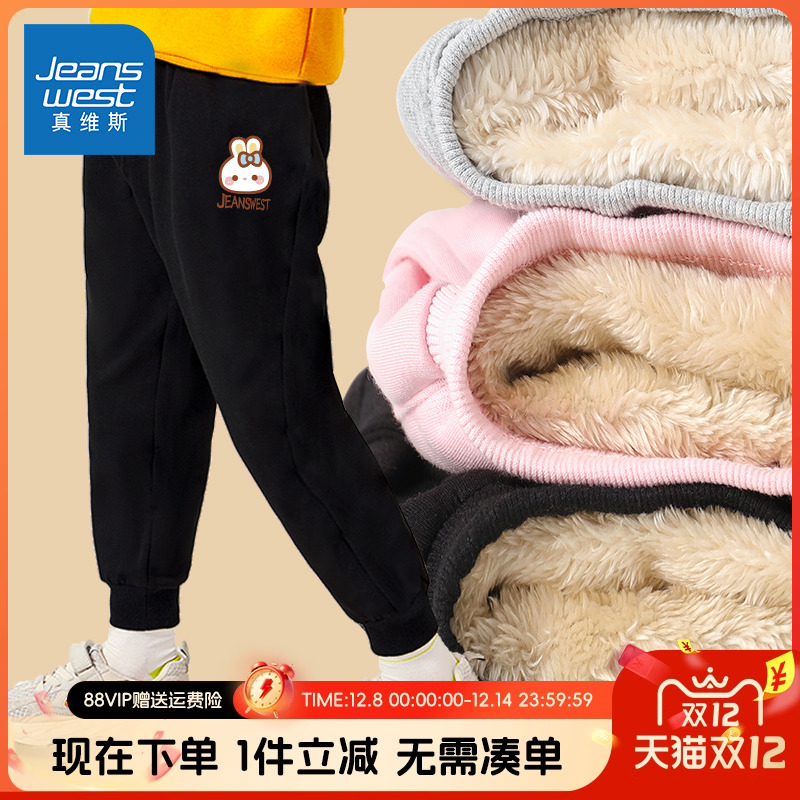真维斯童装女童冬季加绒加厚裤子小女孩冬款保暖裤儿童卫裤秋冬款