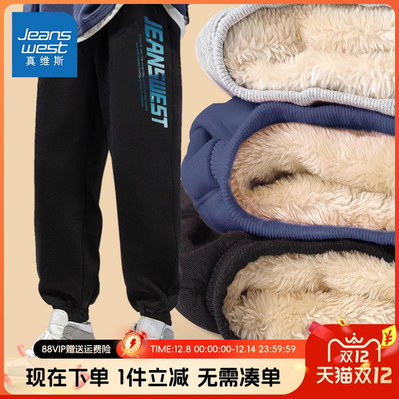 真维斯男童加绒裤子秋冬款2025新款卫裤羊羔绒长裤儿童加厚运动裤