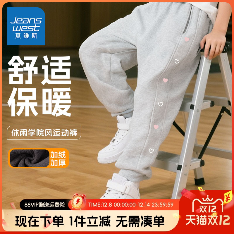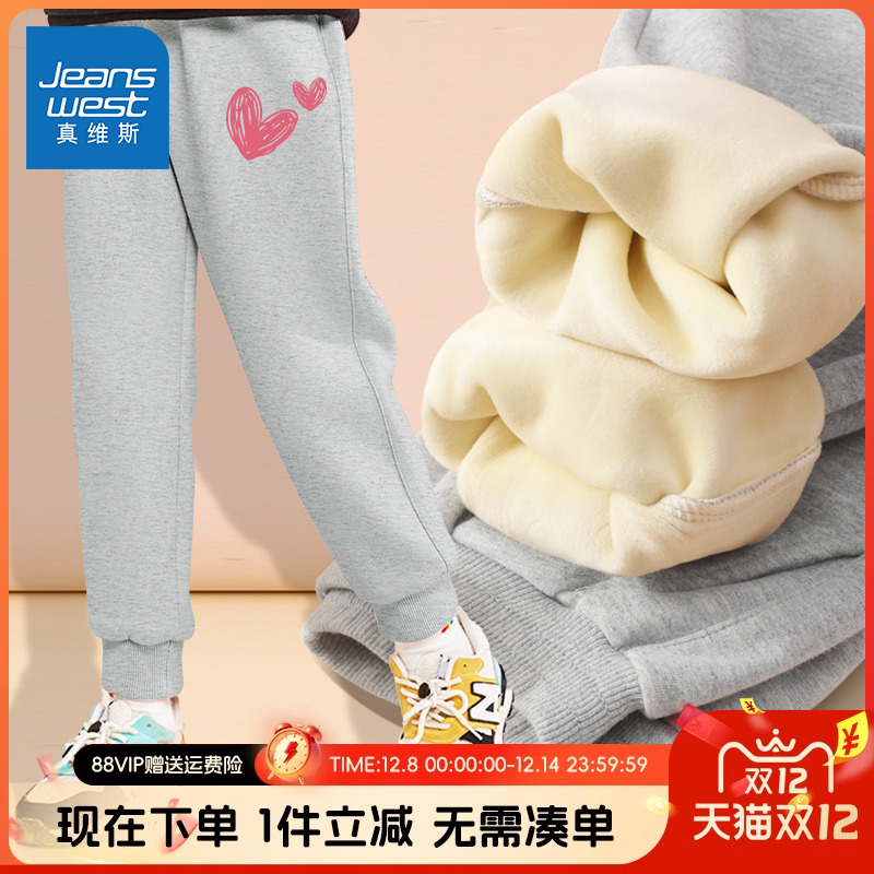 真维斯童装女童裤子秋冬款儿童冬季宽松运动裤女大童洋气加绒卫裤