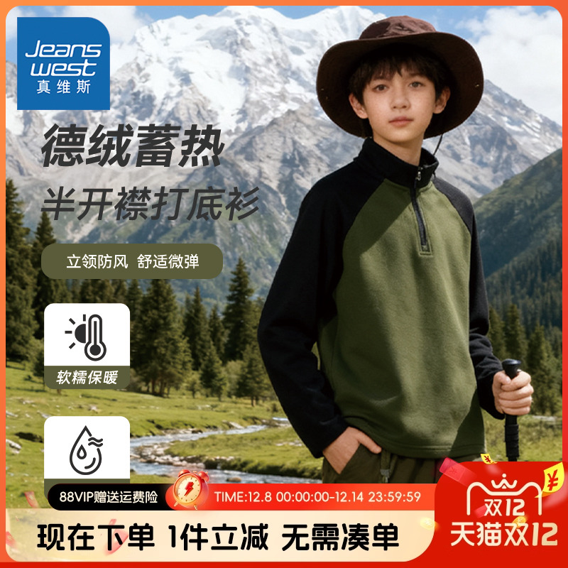 真维斯童装男童打底衫儿童秋冬款德绒保暖上衣中大童半开襟套头衫