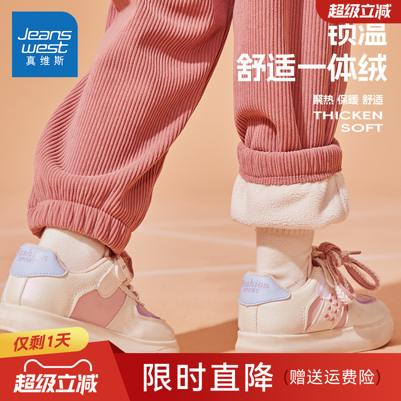 真维斯童装灯芯绒裤子女童加绒运动裤秋冬儿童冬季加厚一体绒棉裤