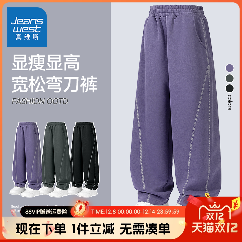 真维斯户外运动高腰针织软糯绵绵裤遮肉显瘦慵懒风休闲拖地阔腿裤