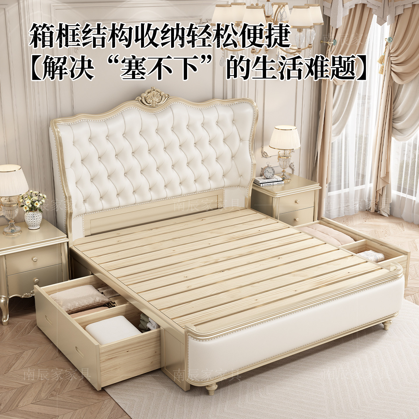 美式轻奢实木床现代简约1.8米主卧双人床欧式公主床软包储物婚床