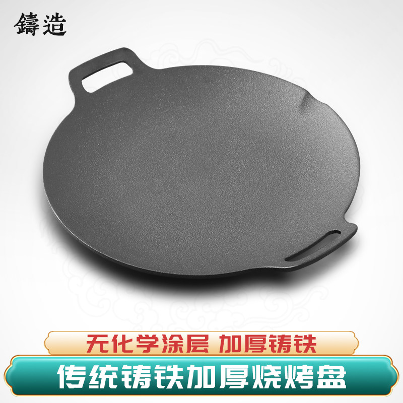 铸铁户外烤盘韩式烤肉盘铁板烧家用烤肉锅煎盘卡式炉烧烤盘无涂层