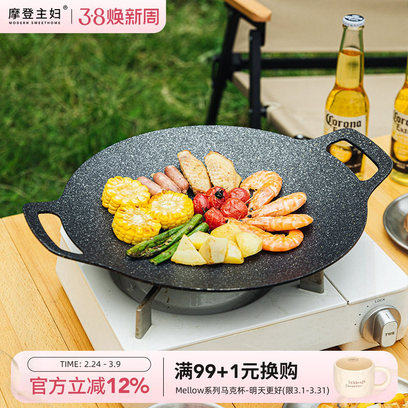 摩登主妇户外烤盘韩式铁板烧烤肉锅卡式炉烤肉盘家用麦饭石烧烤盘