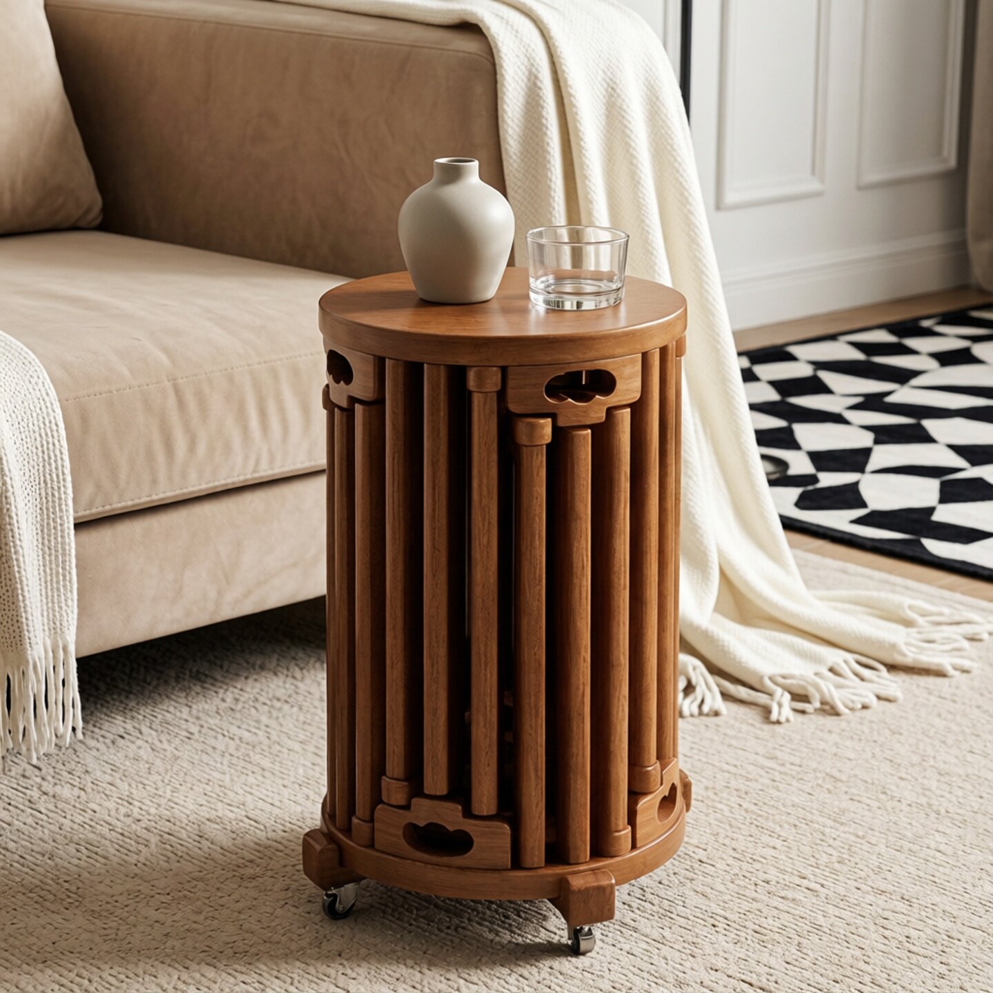 新中式叠叠乐圆凳实木可叠放餐桌凳组合家用茶几凳多功能滑轮边几