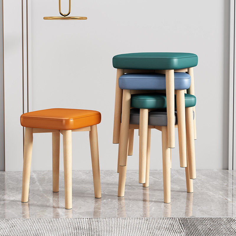 凳子凳子餐桌小客厅木头软包可板凳现代圆凳实木家用叠放餐椅简约