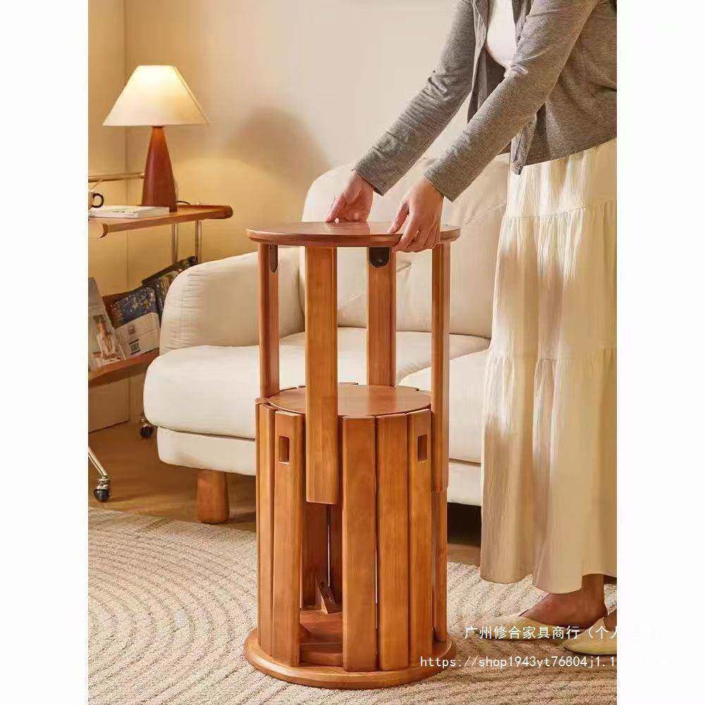 叠叠圆凳实木功能板凳子组合几客厅家茶用叠737放现凳代吃饭多餐