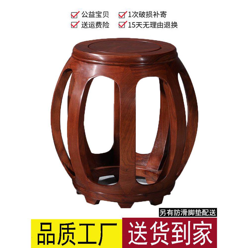 红木鼓凳圆凳实木凳子花梨鸡翅木雕花矮凳古筝凳客厅茶几鞋凳包邮