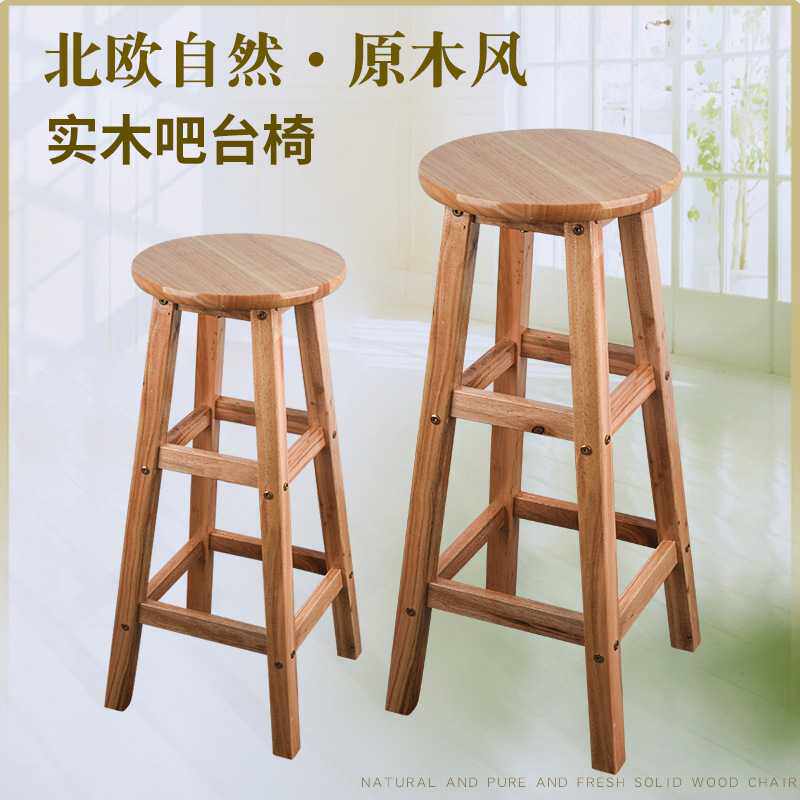 高凳子实木圆凳家用木凳子餐凳简约成人商用高脚凳原木凳吧台椅子