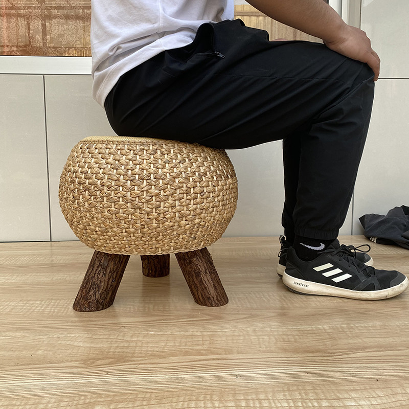 藤编圆凳实木板凳家用坐墩换鞋小凳子创意鼓凳客厅茶几凳沙发矮凳