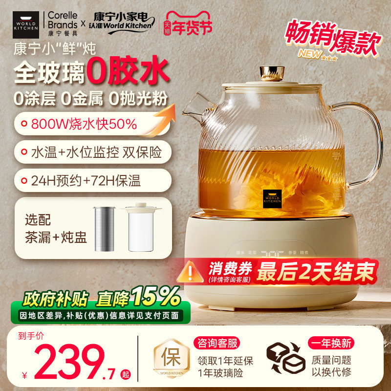 康宁养生壶炖煮一体家用多功能花茶壶全玻璃纯养生烧水壶2026新款