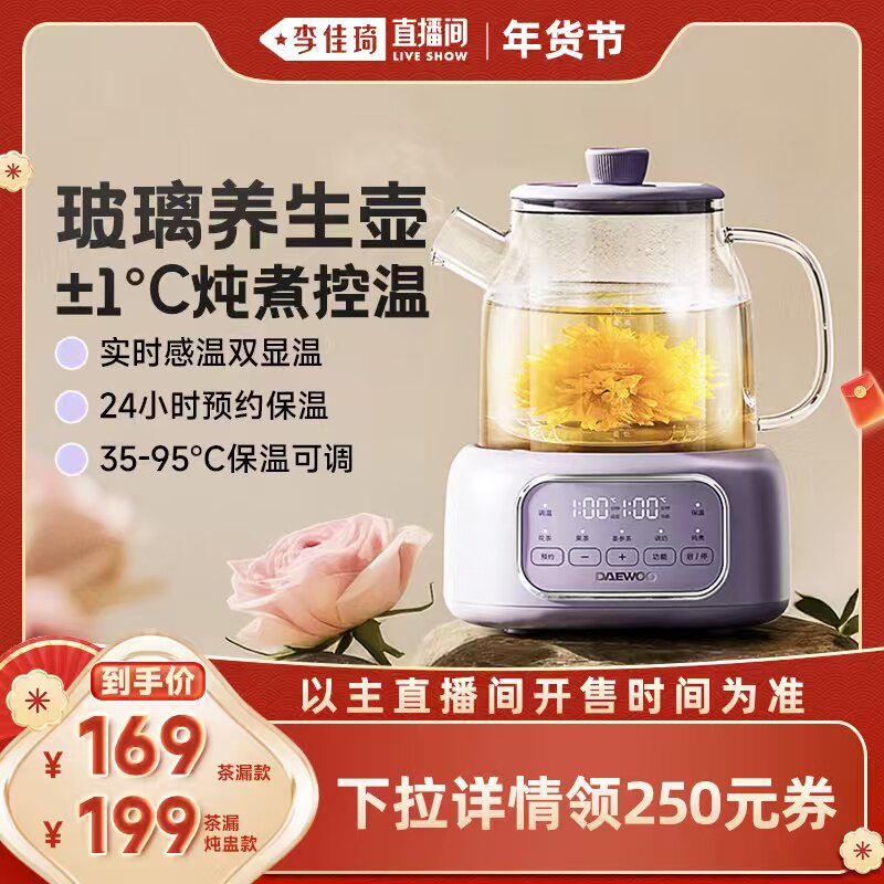 【李佳琦年货爆品零食返场】大宇全玻璃养生壶多功能办公室煮茶壶