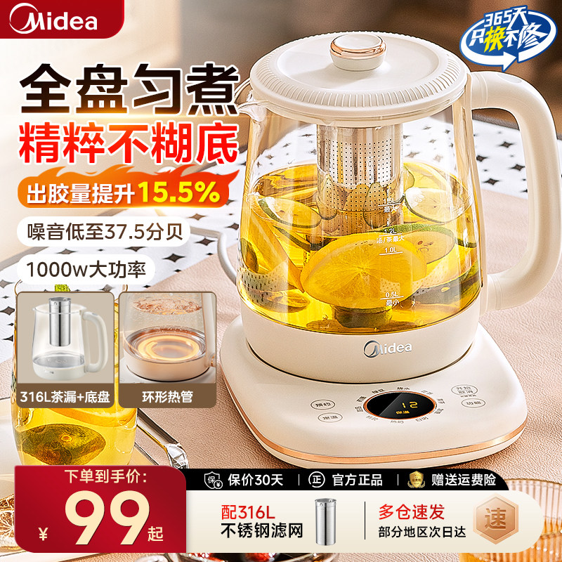 美的养生壶办公室小型家用烧水多功能炖煮一体玻璃煮茶器2025新款
