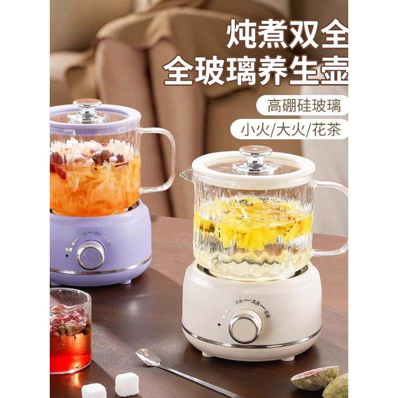小熊全玻璃恒温养生壶家用多功能办公室小型煮茶壶烧水壶炖煮一体