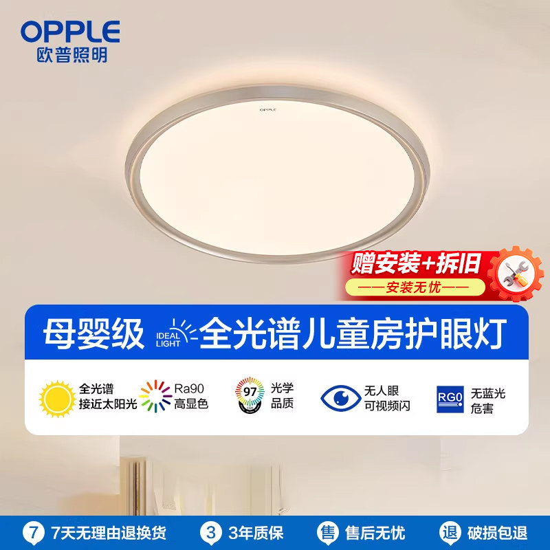 欧普照明全光谱护眼卧室吸顶灯LED圆灯房间灯卧室灯儿童房灯光越