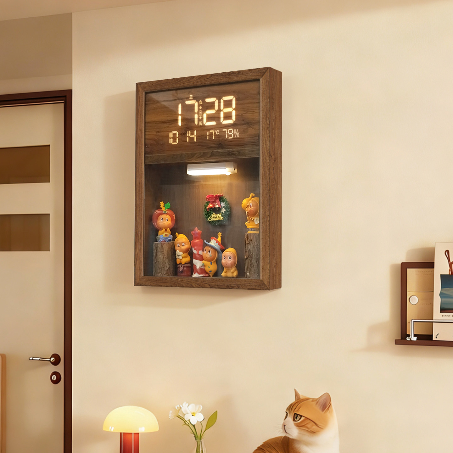 客厅时钟万年历电子钟星星人盲盒收纳展示架创意墙上挂画发光钟表
