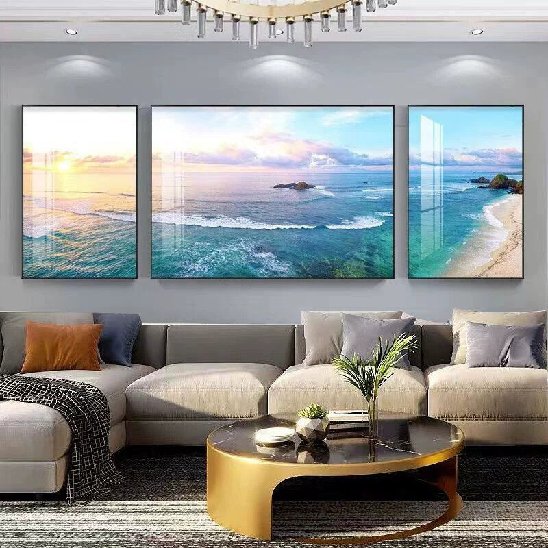 挂在客厅墙上的装饰画大海风景简约壁画现代沙发背景墙挂画晶瓷画