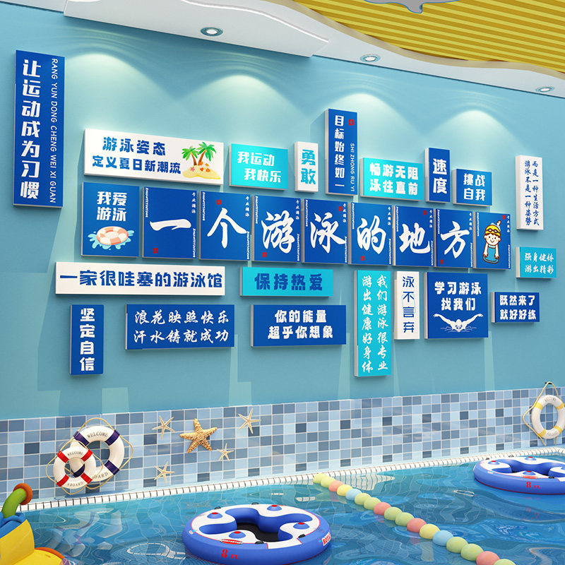 游泳馆池墙面装饰儿童母婴店布置文化背景形象健身房防水贴纸挂画
