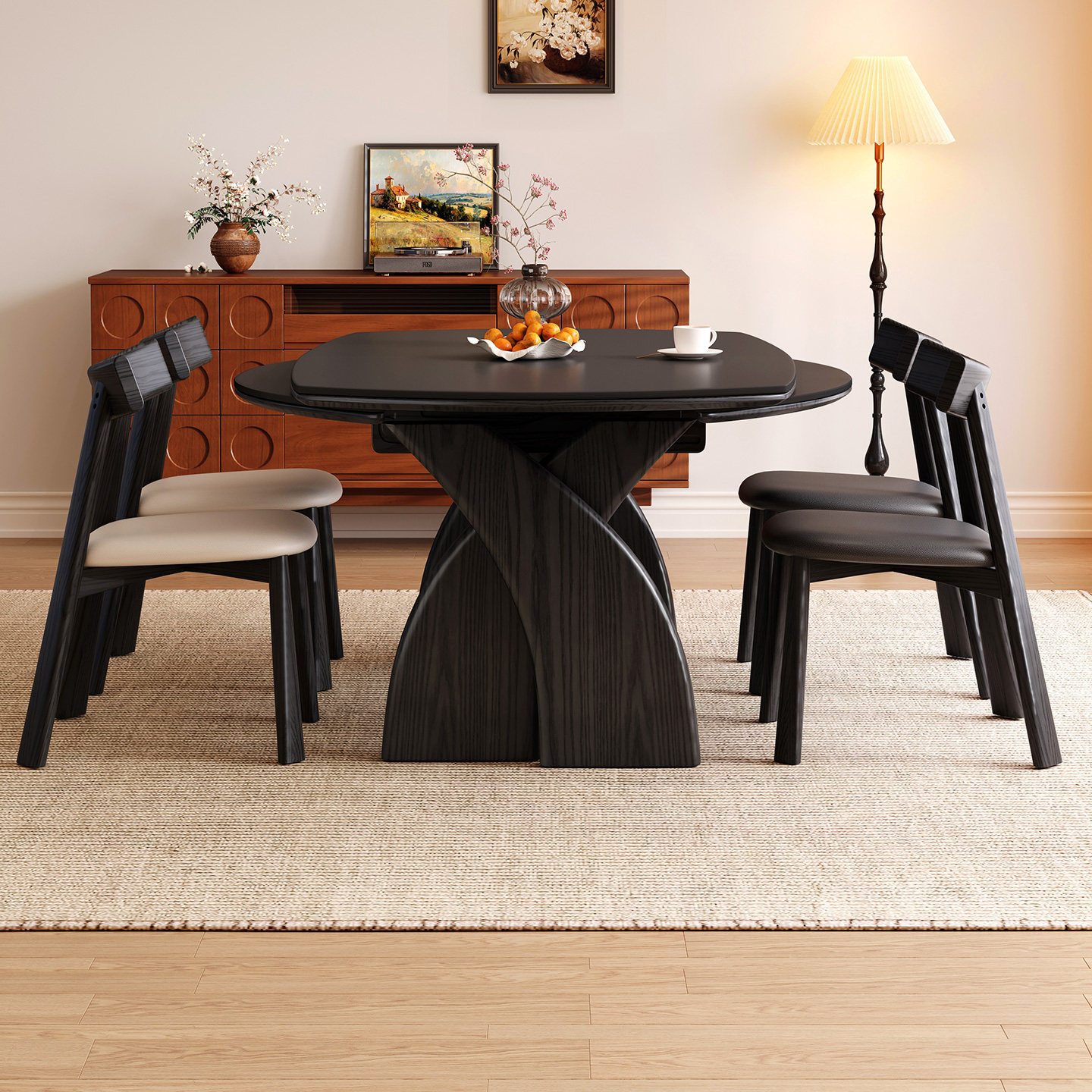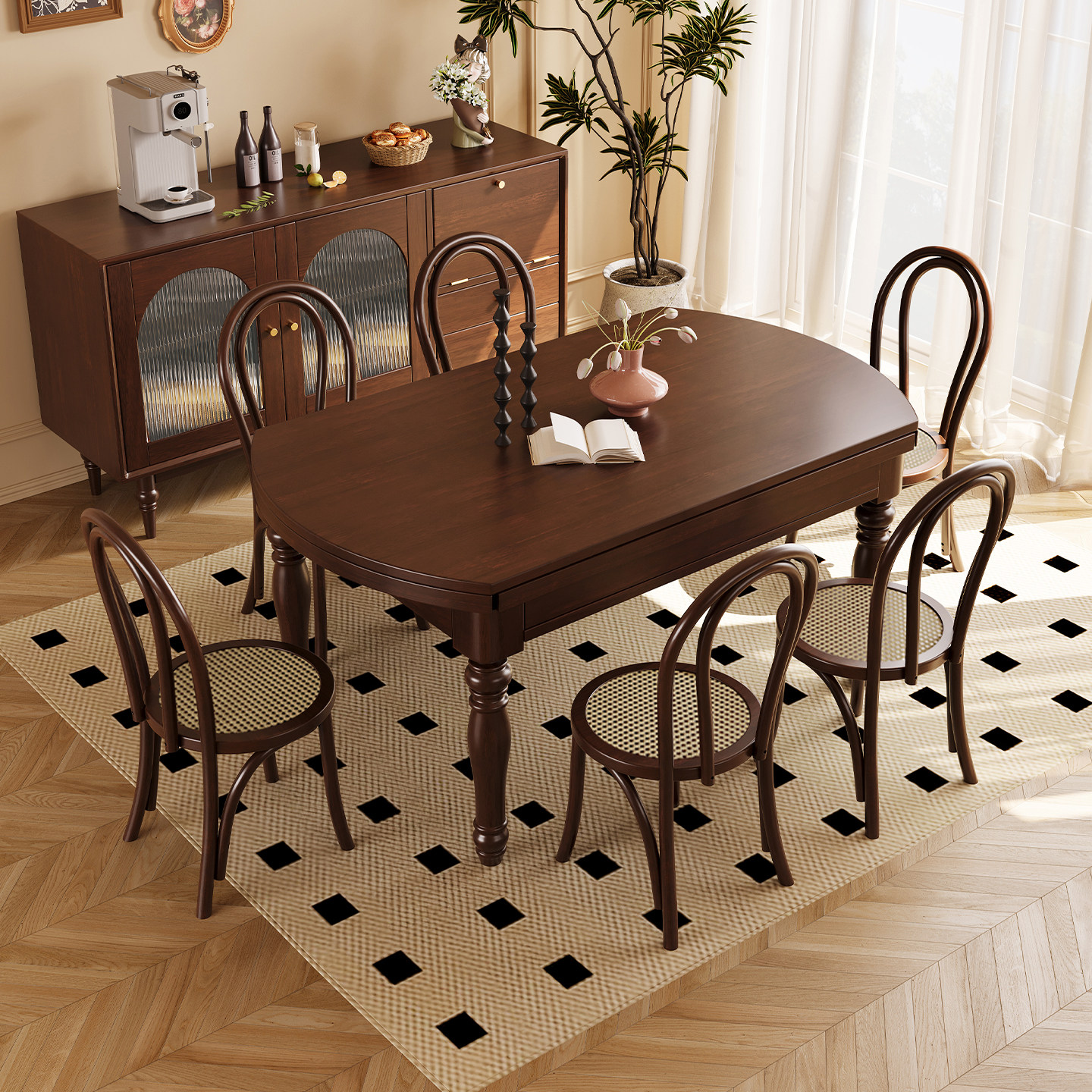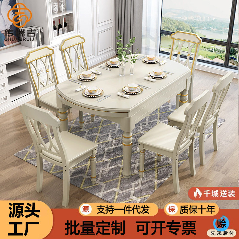 - 实木餐桌组合伸缩
