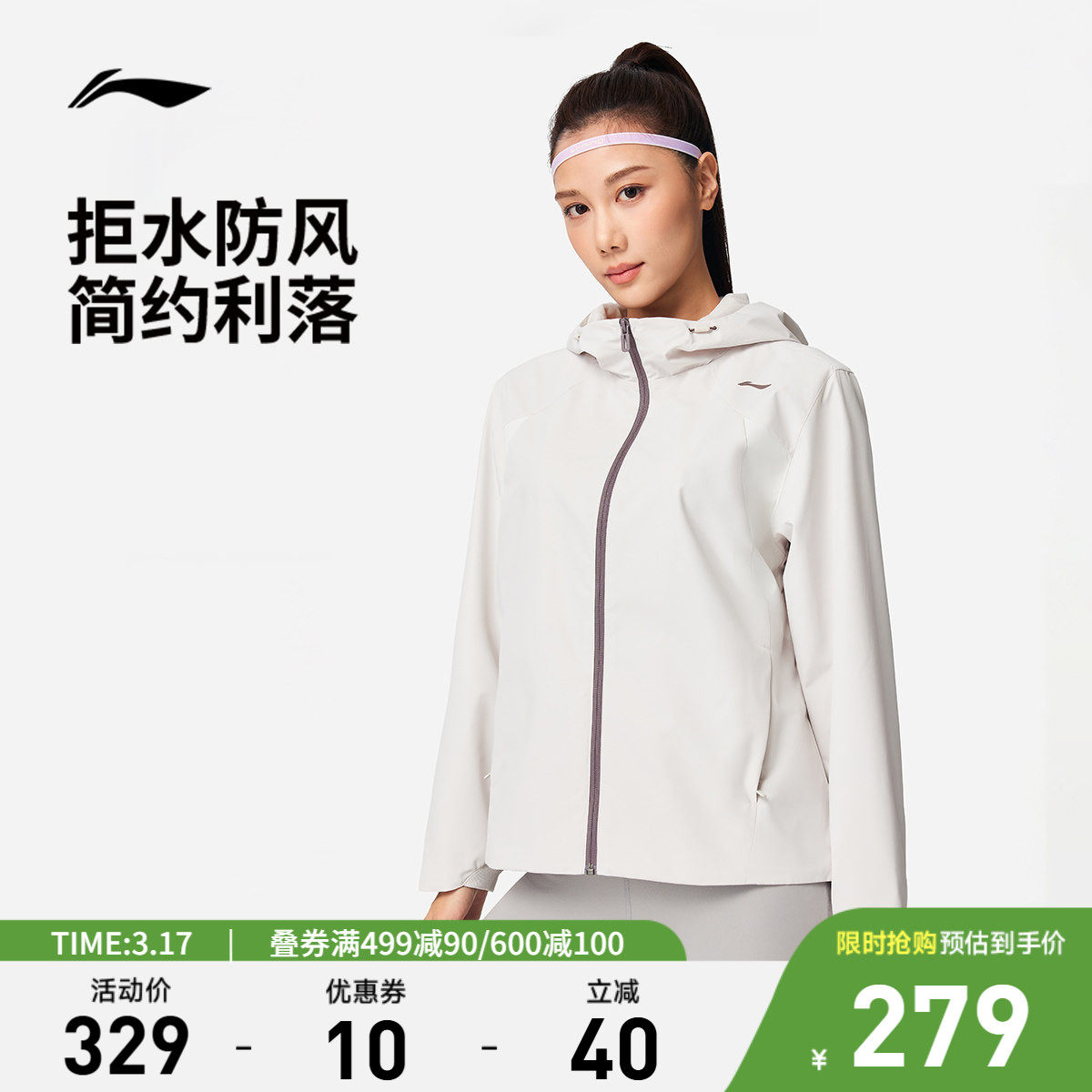 李宁运动风衣女2026年春季新款防风防晒防泼水运动外套AFDW102