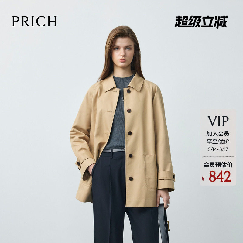 PRICH时尚气质单排扣翻领风衣2026春季新款宽松廓形挺括外套女