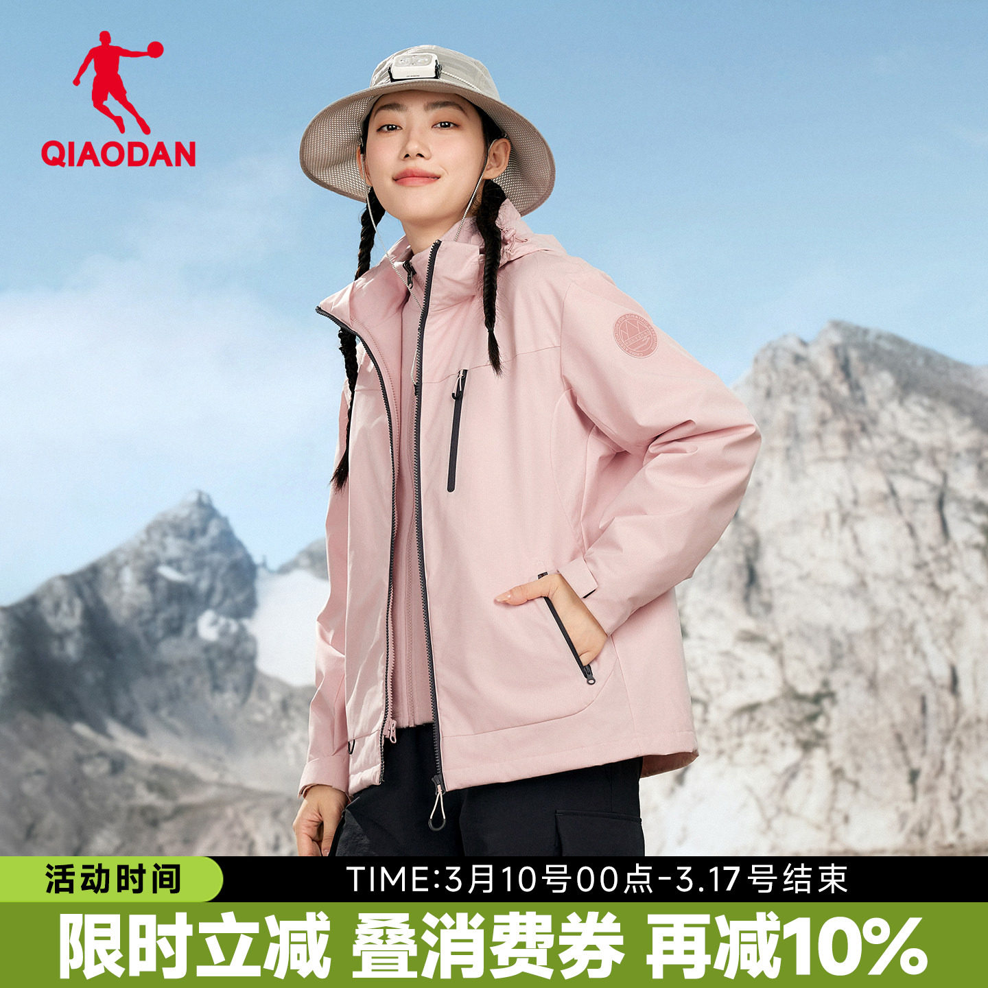 乔丹中科探联名防水冲锋外套女士商场同款两件套风衣QDFFD2254316