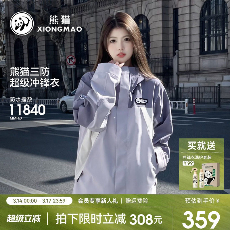 熊猫骆驼冲锋衣短外套女装春秋2026新款撞色单层防风防水情侣风衣