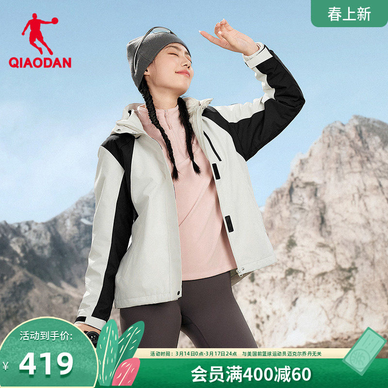 乔丹加绒运动风衣女防泼水厚外套2026秋冬季新款三合一两件套女装