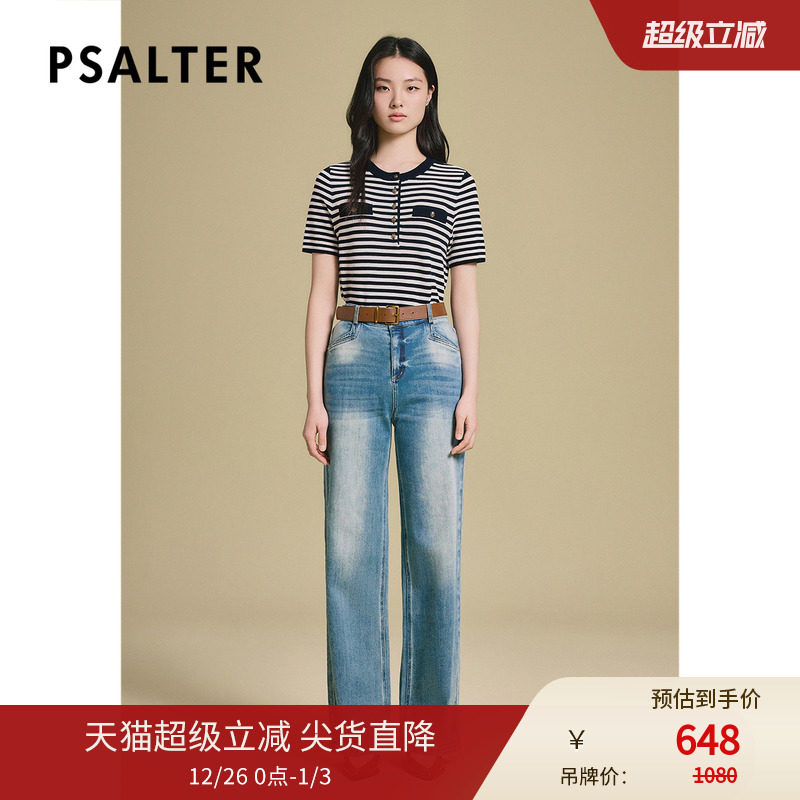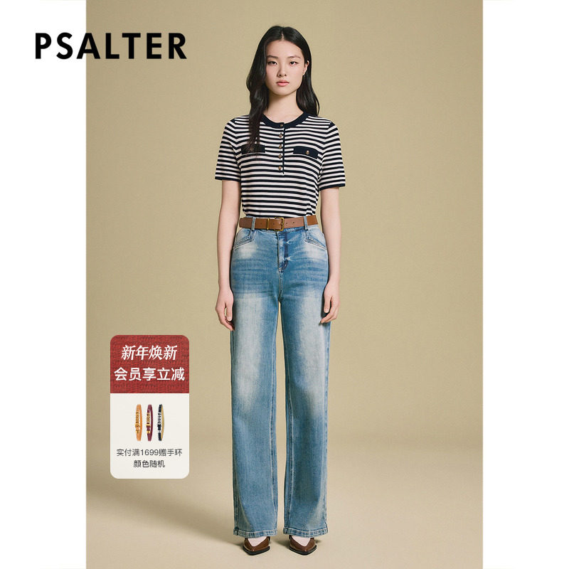 诗篇专选莱赛尔针织衫圆领短袖条纹套头女针织T恤衫2025夏季新款
