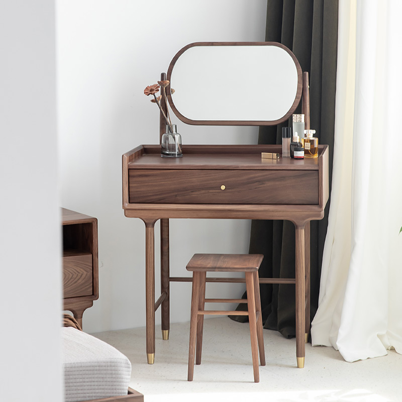 形影家具梳妆台实木中古风卧室胡桃色复古斗柜一体美式法式化妆桌