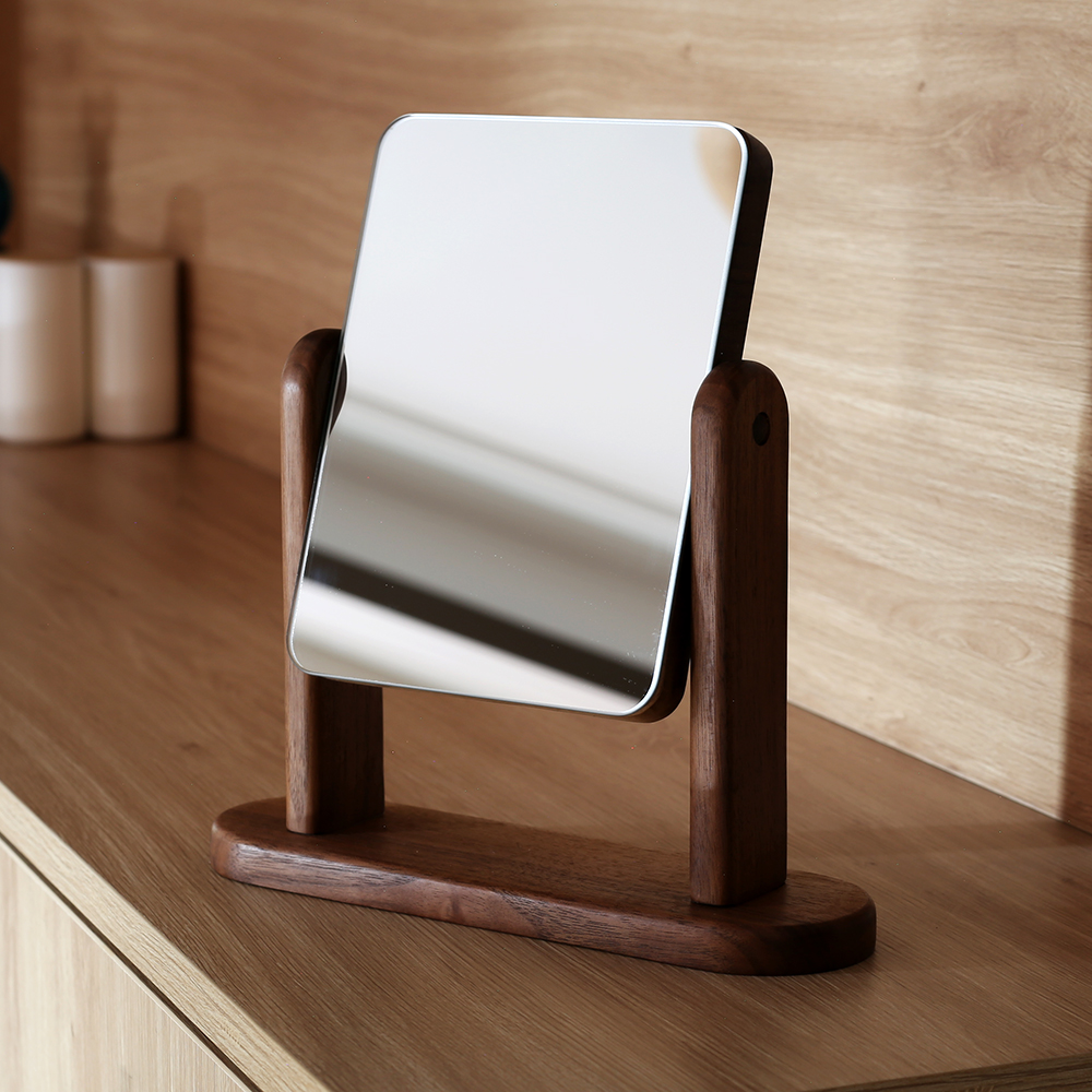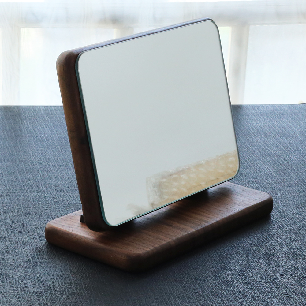 森物社化妆镜台式实木镜子家用高清旋转梳妆镜桌面复古胡桃木镜子