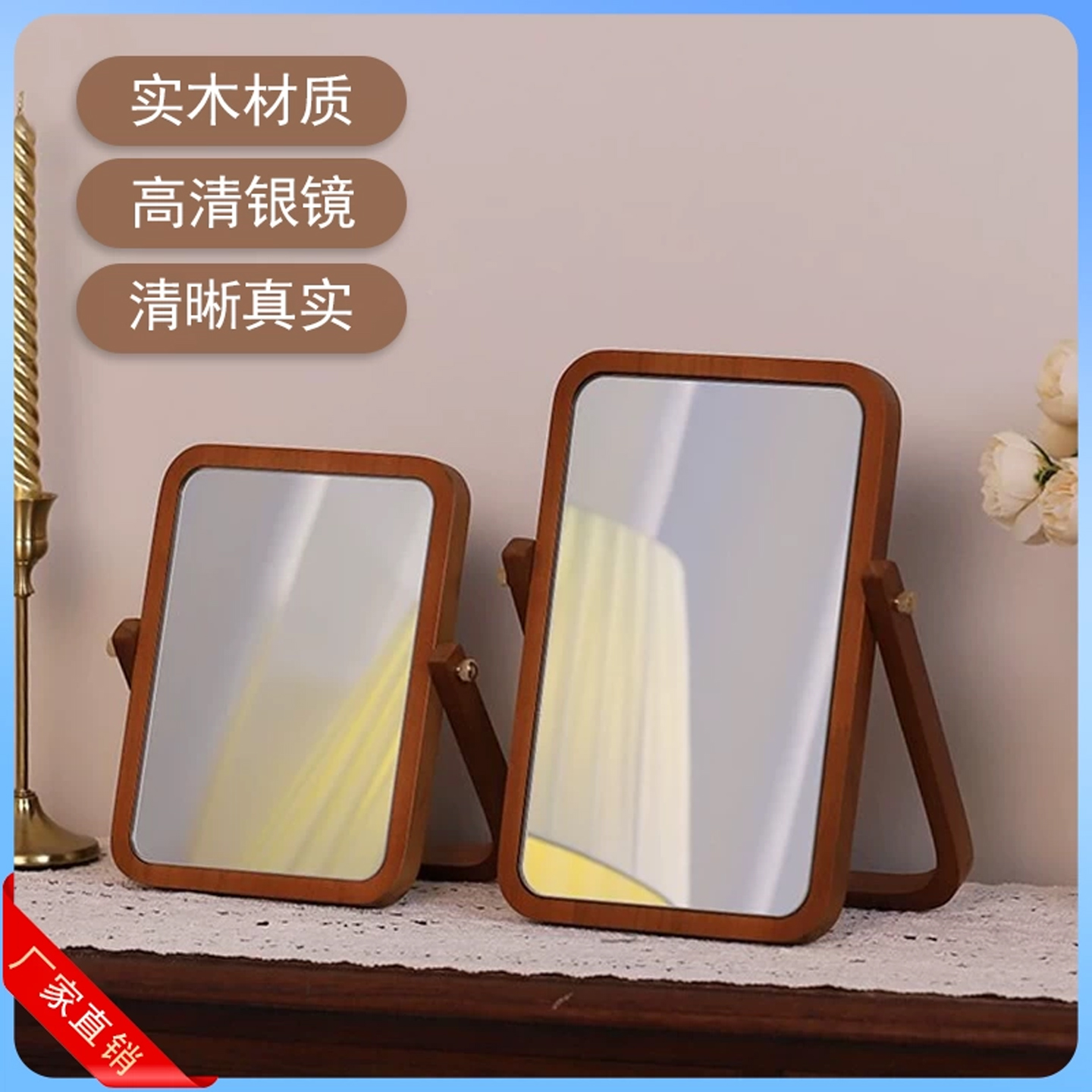 胡桃色实木桌面化妆镜送女生折叠宿舍便携式生日礼物台式梳妆镜子
