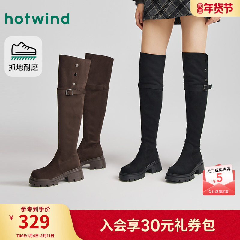 哈森粗高跟过膝靴女冬季新款长筒靴增高显瘦弹力瘦瘦靴HWA230161
