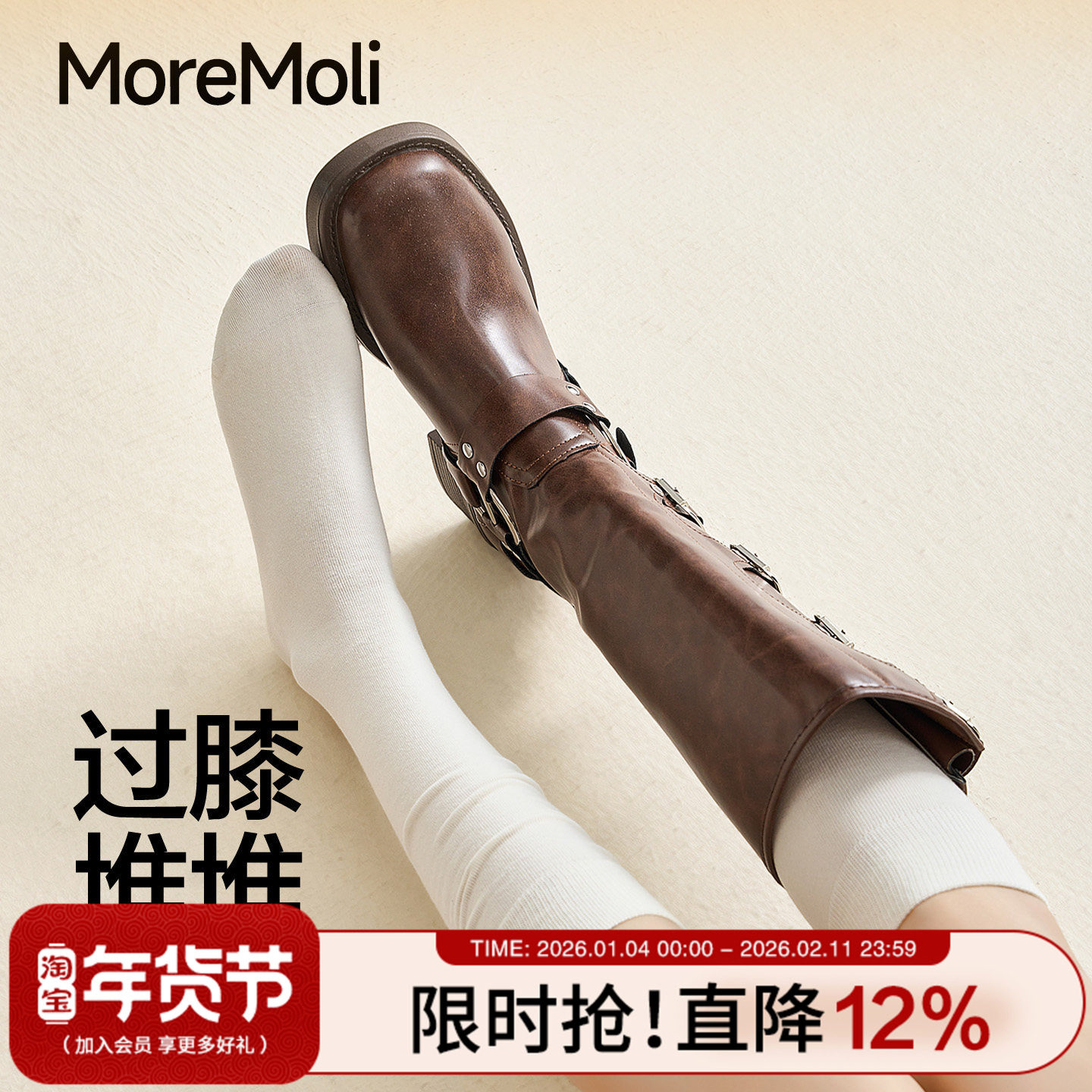 韩版小众设计大筒围堆堆过膝长靴2025冬季新款圆头高筒显瘦骑士靴