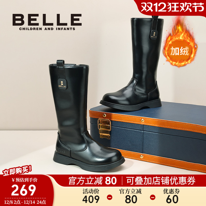 百丽童鞋女童长靴2025冬季新款加绒靴儿童高筒靴中大童过膝骑士靴