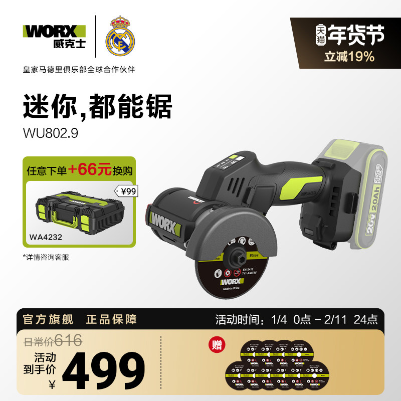 威克士小鹰锯WU802迷你电动角磨机锂电无刷磨光机小型切割机美缝