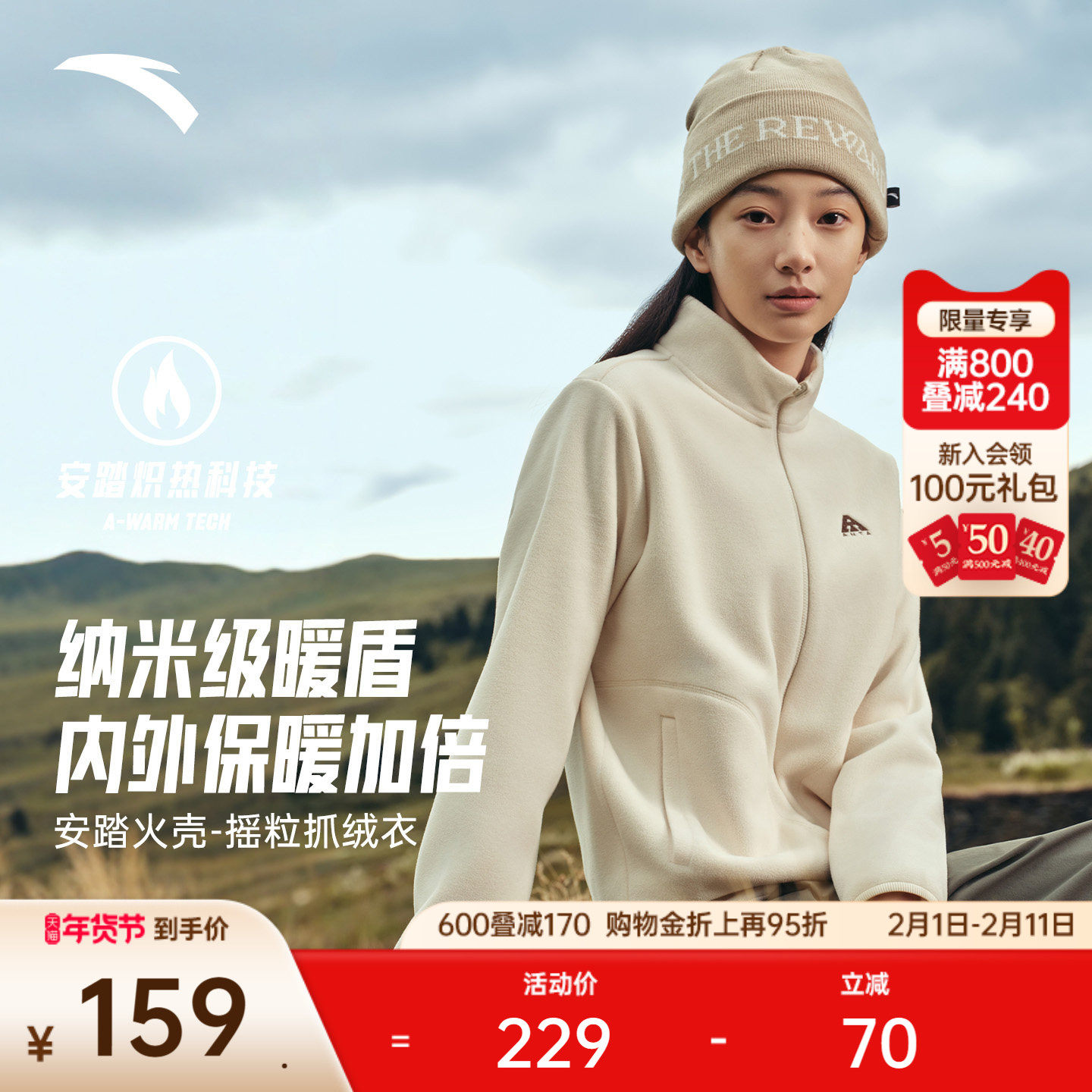 安踏火壳抓绒衣丨大地之壳3.0女冬季新款内胆衣立领外套运动上衣