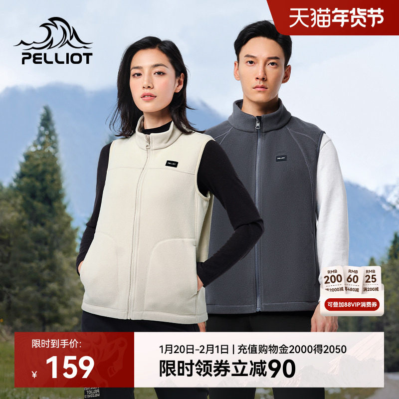 伯希和户外抓绒衣马甲女冬季摇粒绒保暖背心男加绒冲锋衣内胆上衣