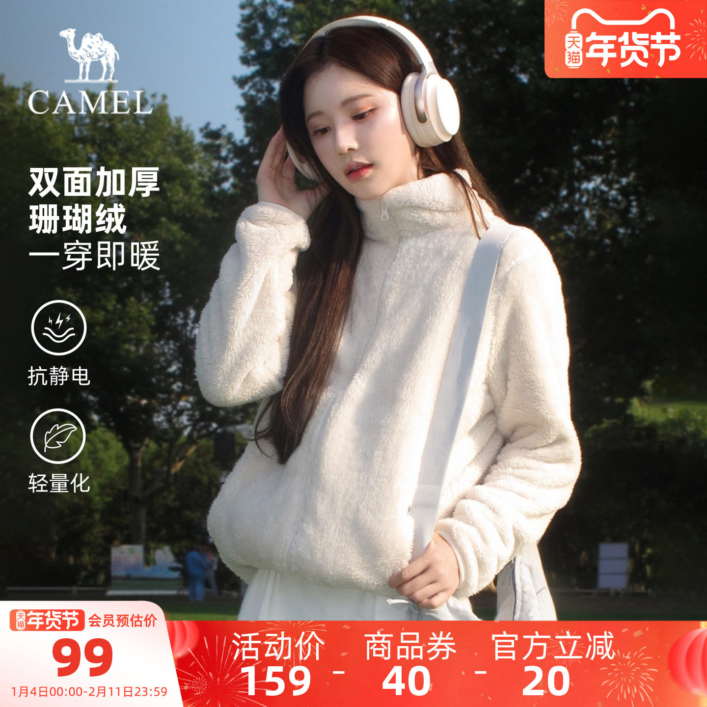 骆驼抓绒衣女士外套2026新款户外秋冬加绒加厚双面摇粒绒立领开衫