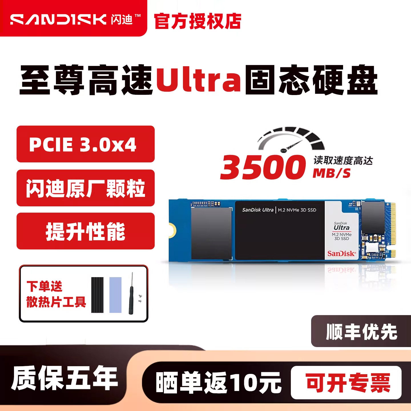 闪迪pcie3.0 m2固态硬盘1t ssd笔记本电脑台式ultra至尊高速H3N