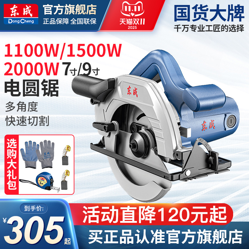 东成电圆锯9寸7寸电锯木工专用手提切割机木头倒装手持式家用圆锯