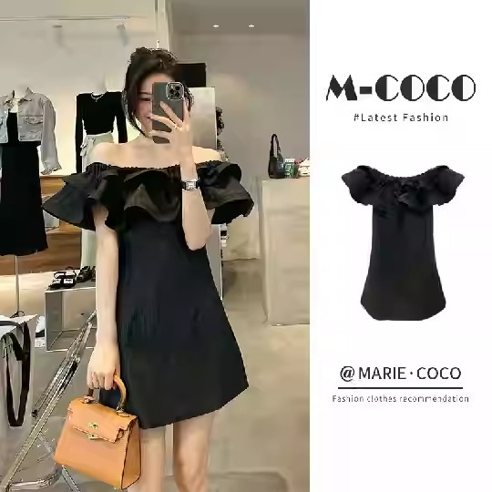速发大码早秋气胖露肩连衣裙2024赫款质妹妹遮肚法式新本风裙子