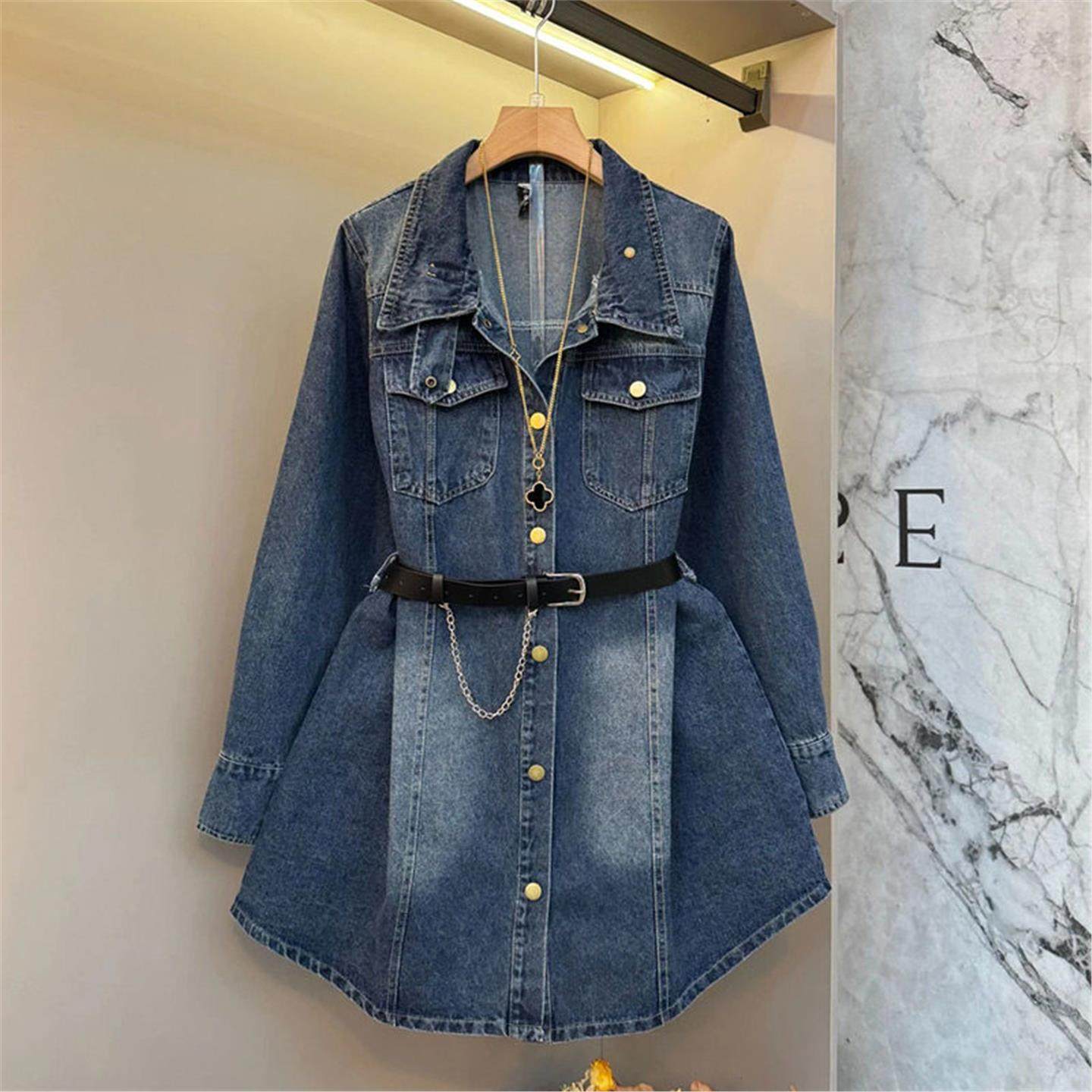 胖潮春季牛仔裙简约妹妹连衣裙腰带新款女装显瘦大码2026设计气质