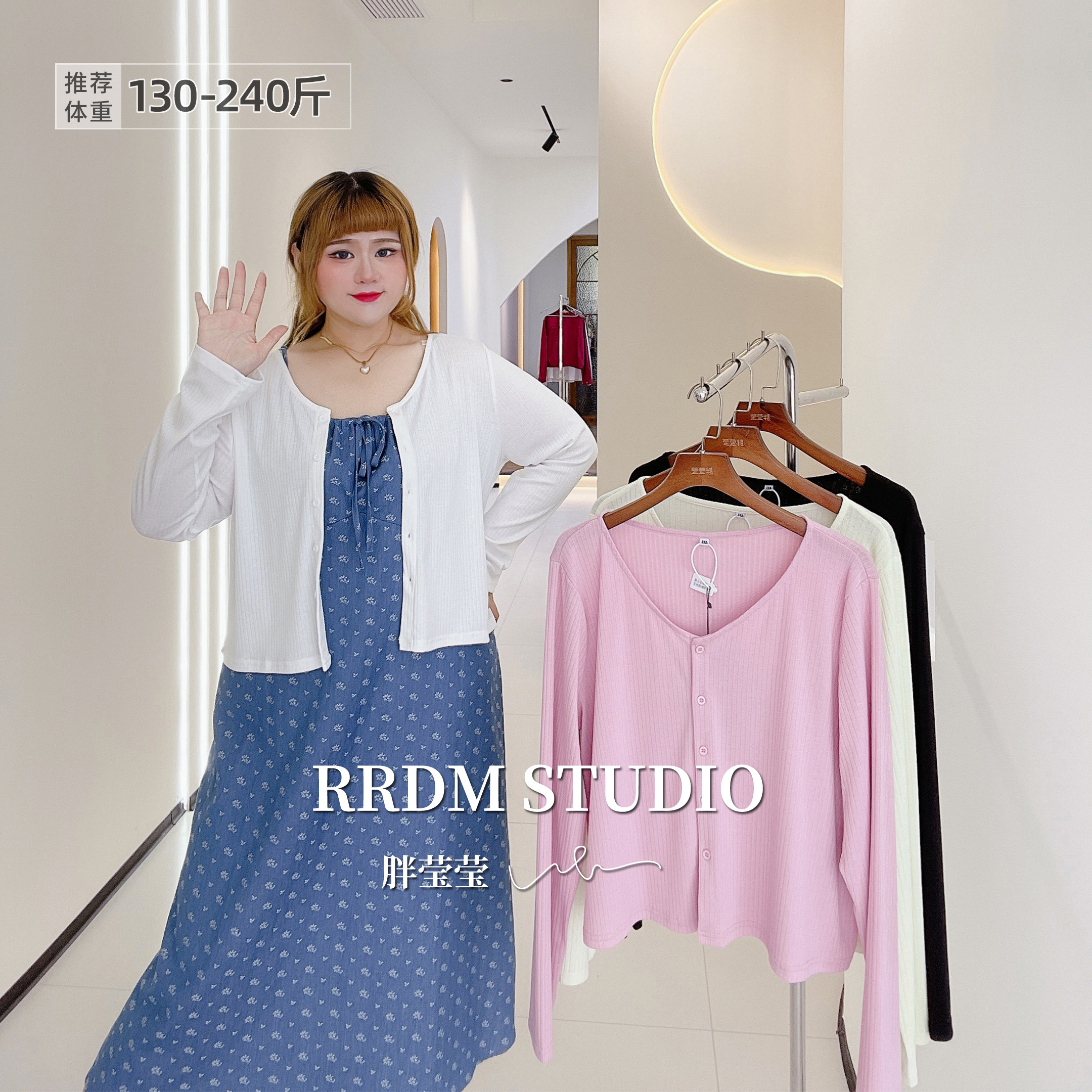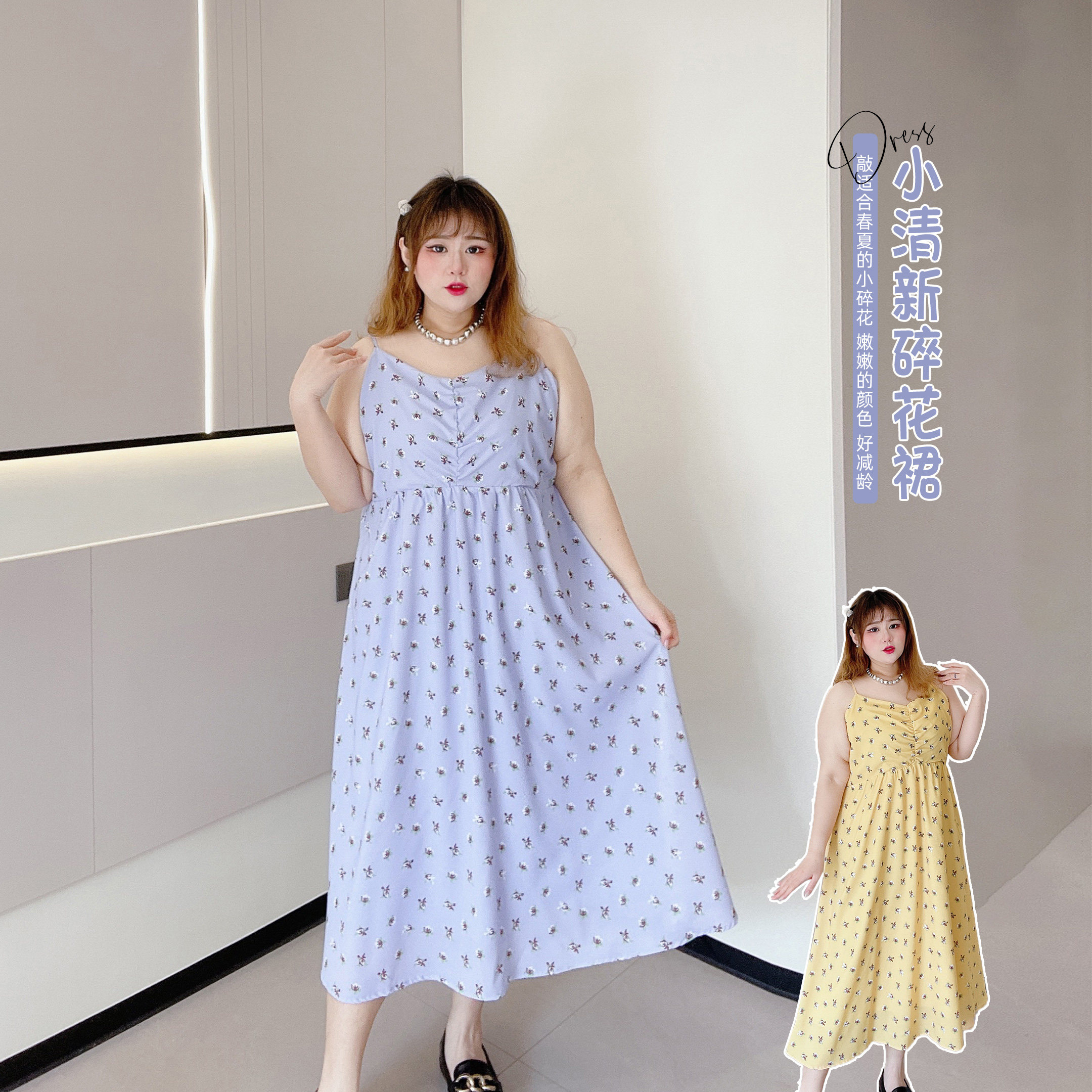 胖莹莹大码女装240斤胖妹纯色宽松遮肉显瘦开衫碎花吊带裙连衣裙