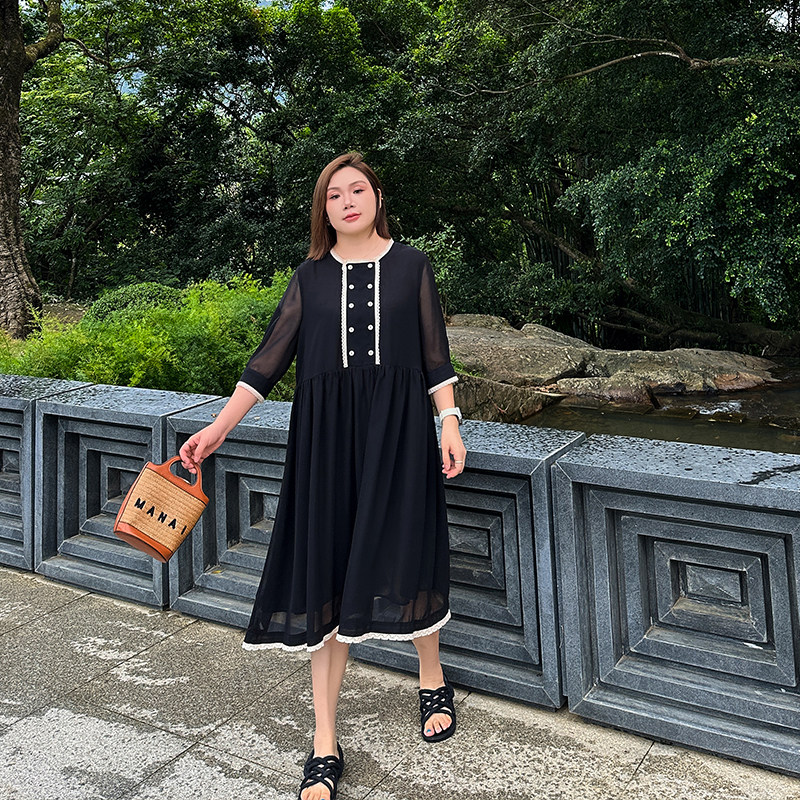 - 加肥加大雪纺连衣裙夏