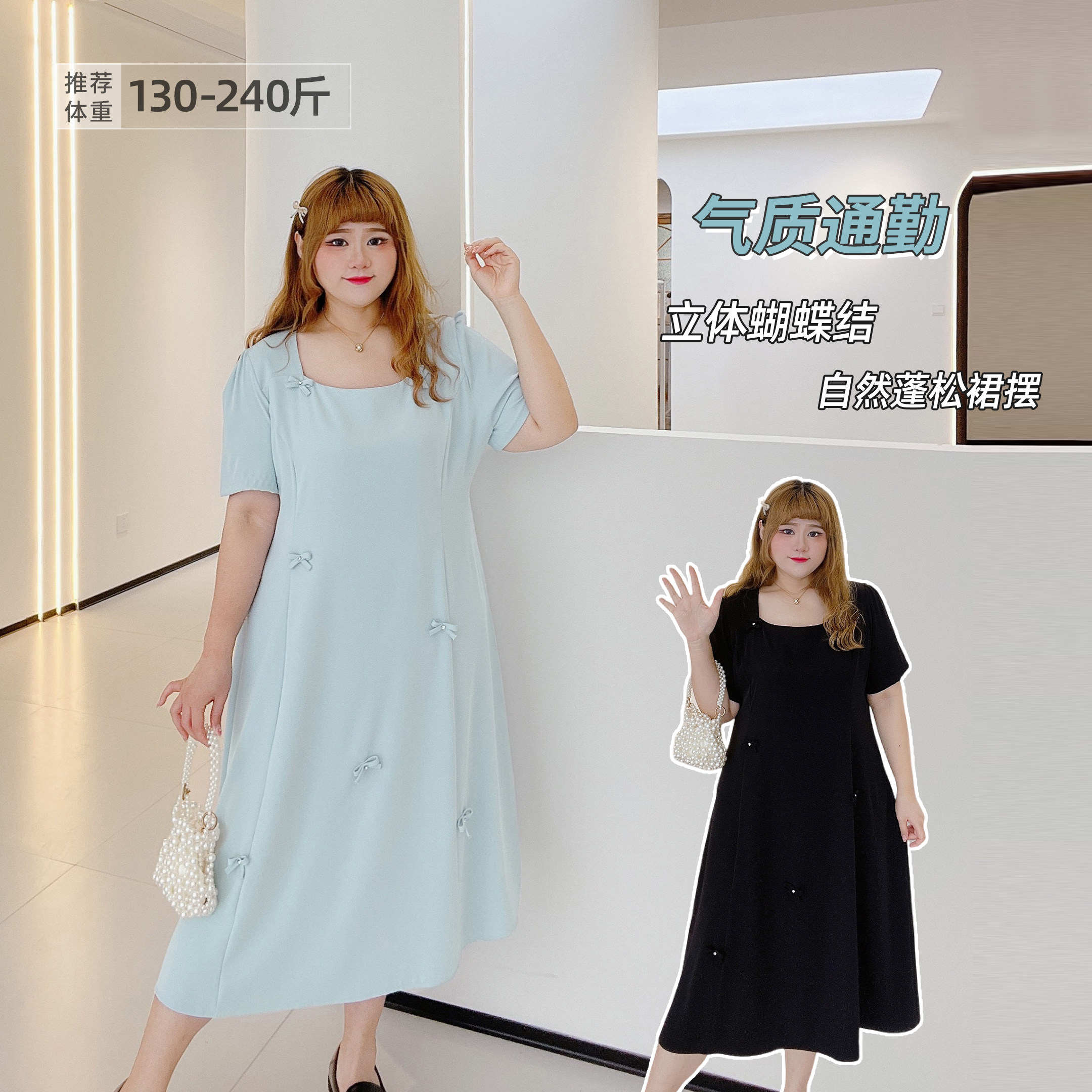 胖仙女莹莹大码女装法式设计感蝴蝶结260斤胖妹甜美显瘦连衣裙