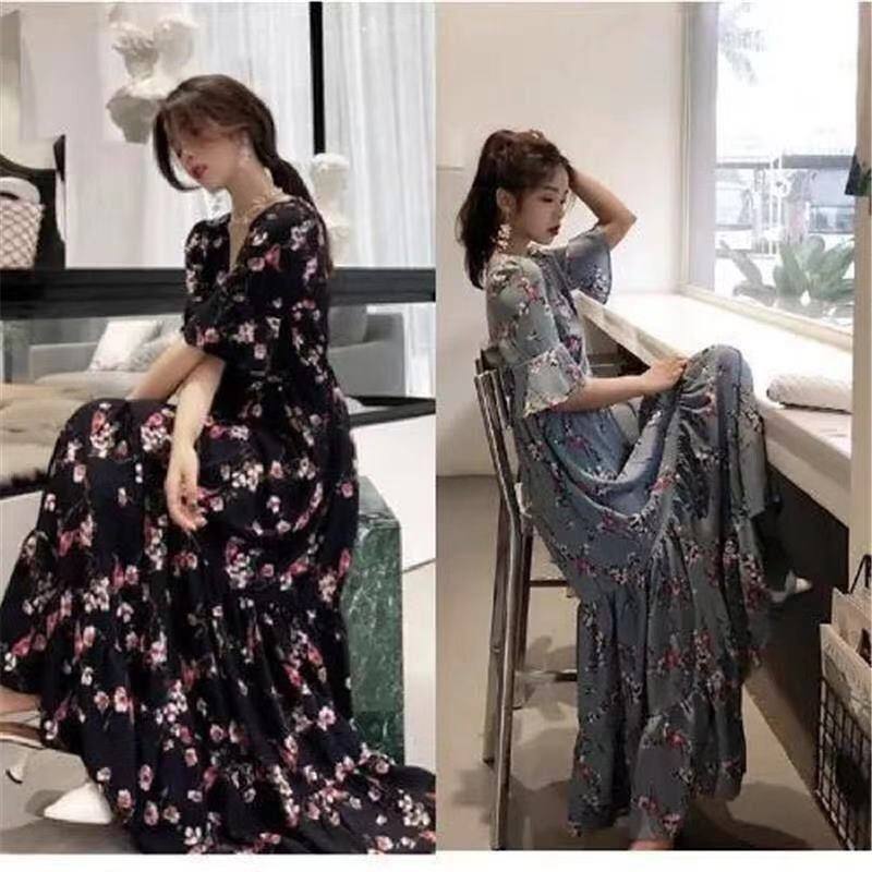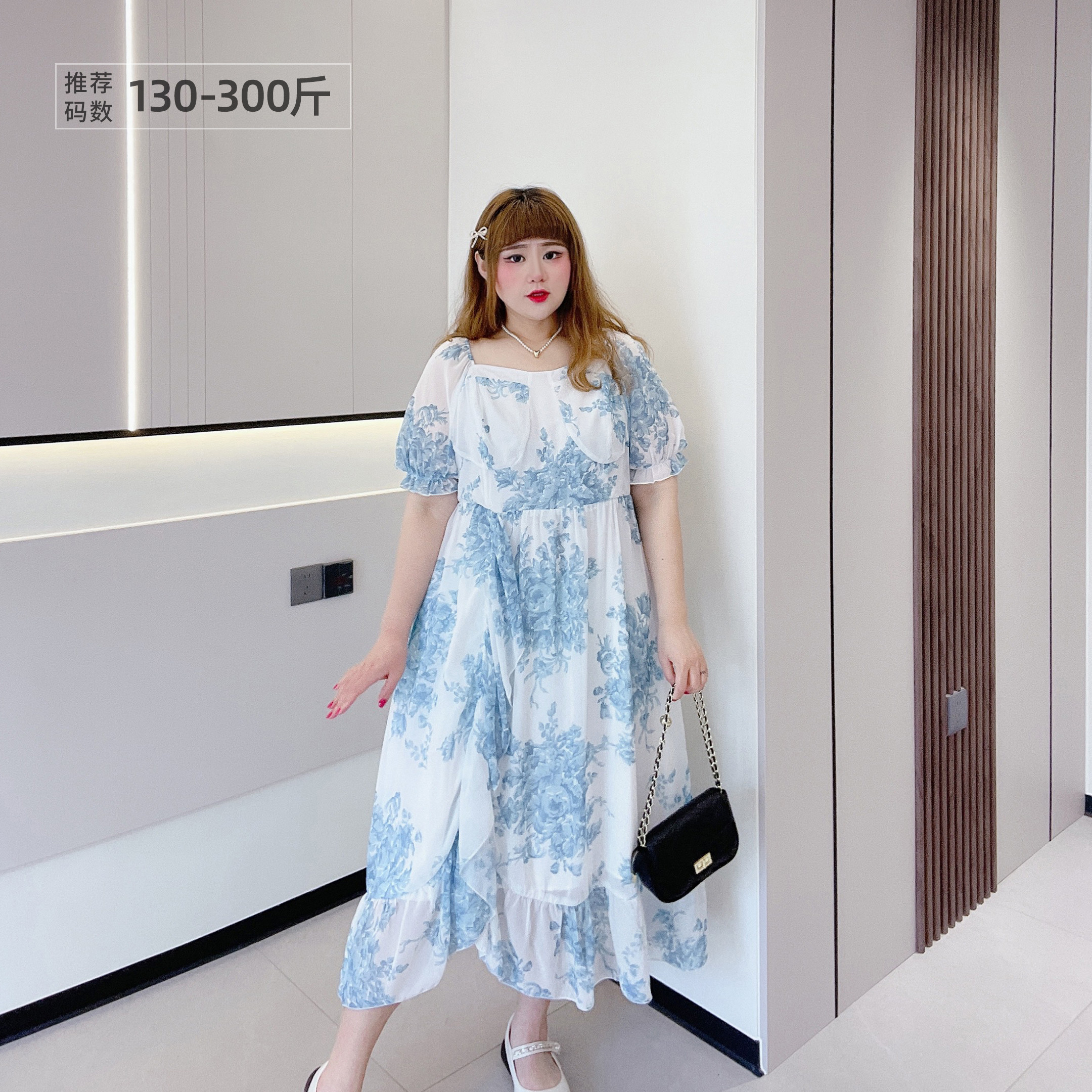 300斤特大码女装碎花温柔不规则胖莹胖妹甜美收腰飘逸长款连衣裙